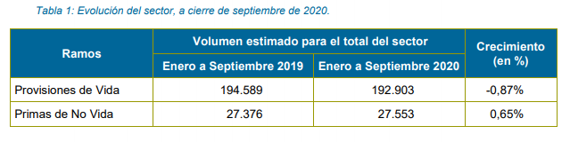 Evolución del sector, a cierre de septiembre de 2020. | Unespa.