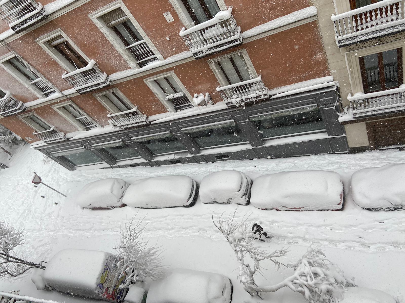 Nieve acumulada en las calles de Madrid. | Foto: Almudena Méndez.