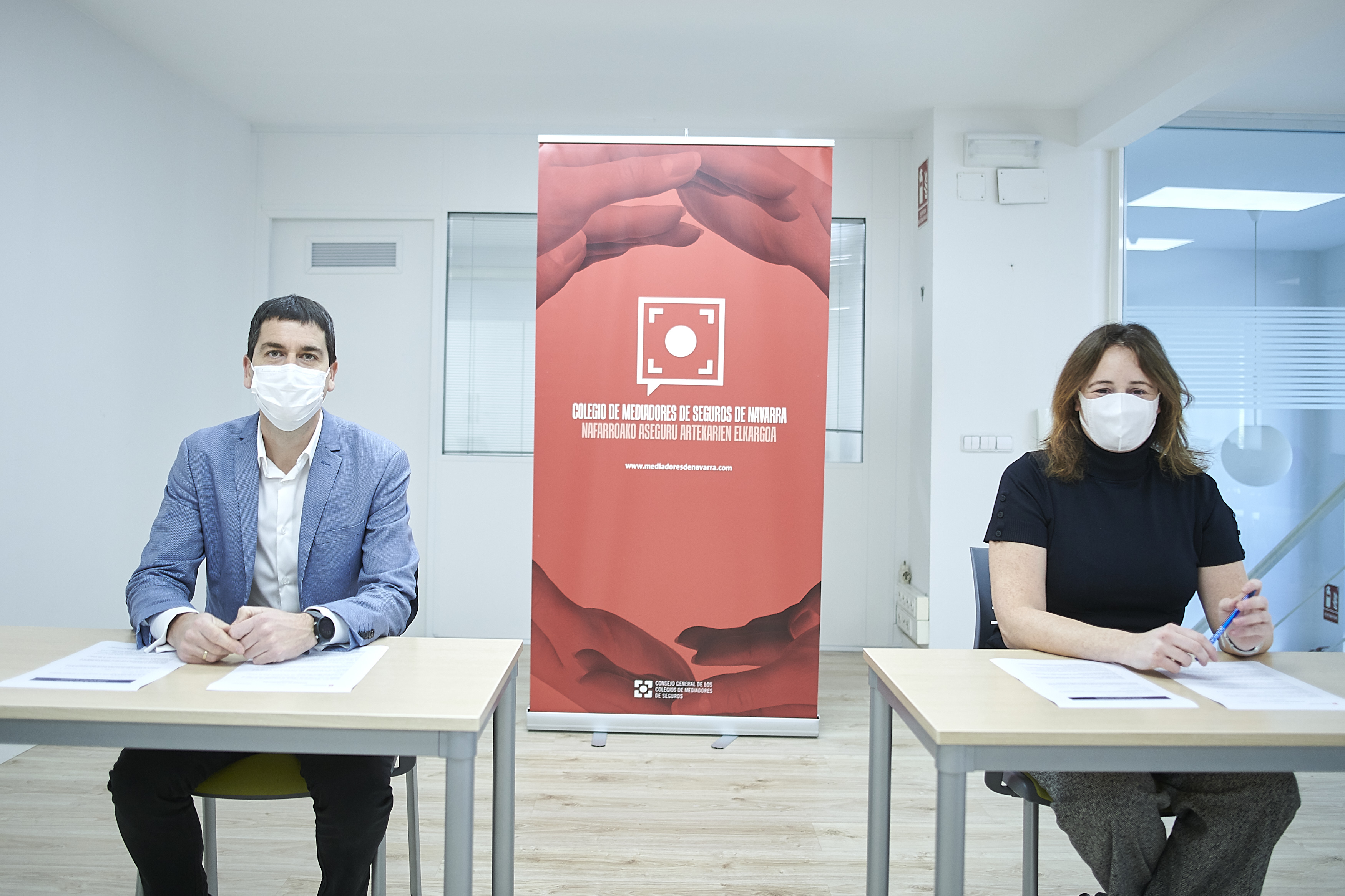 El responsable de Lagun Aro, S.A. en Navarra, Rubén Irisarri, fue el encargado un año más de rubricar el convenio de colaboración con el Colegio de Mediadores de Seguros de Navarra. Un breve encuentro en la sede del organismo en Pamplona que sirvió para renovar el acuerdo y verse con la nueva presidenta María Castañeda.
