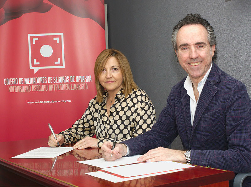Asefa Seguros ha firmado este lunes 7 de mayo su décimo convenio de colaboración por el que la compañía apoya las actividades del Colegio de Mediadores de Seguros de NavarraAlberto Moreno, presidente del Colegio, e Iratxe Gracia, ejecutiva de cuentas de la compañía. (ver más)