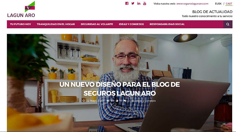 Seguros Lagun Aro acaba de renovar su blog de actualidad, puesto en marcha por la aseguradora en 2011. Con un diseño más moderno con más imágenes y de mayor tamaño, el blog presenta nuevos contenidos y secciones. (ver más)