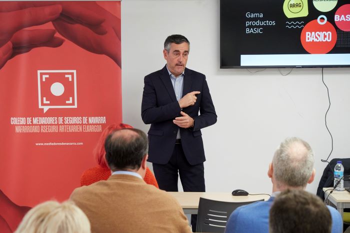 Juan Dueñas explica a los colegiados de Navarra el programa Basic de ARAG. | Foto: Edu Sanz.